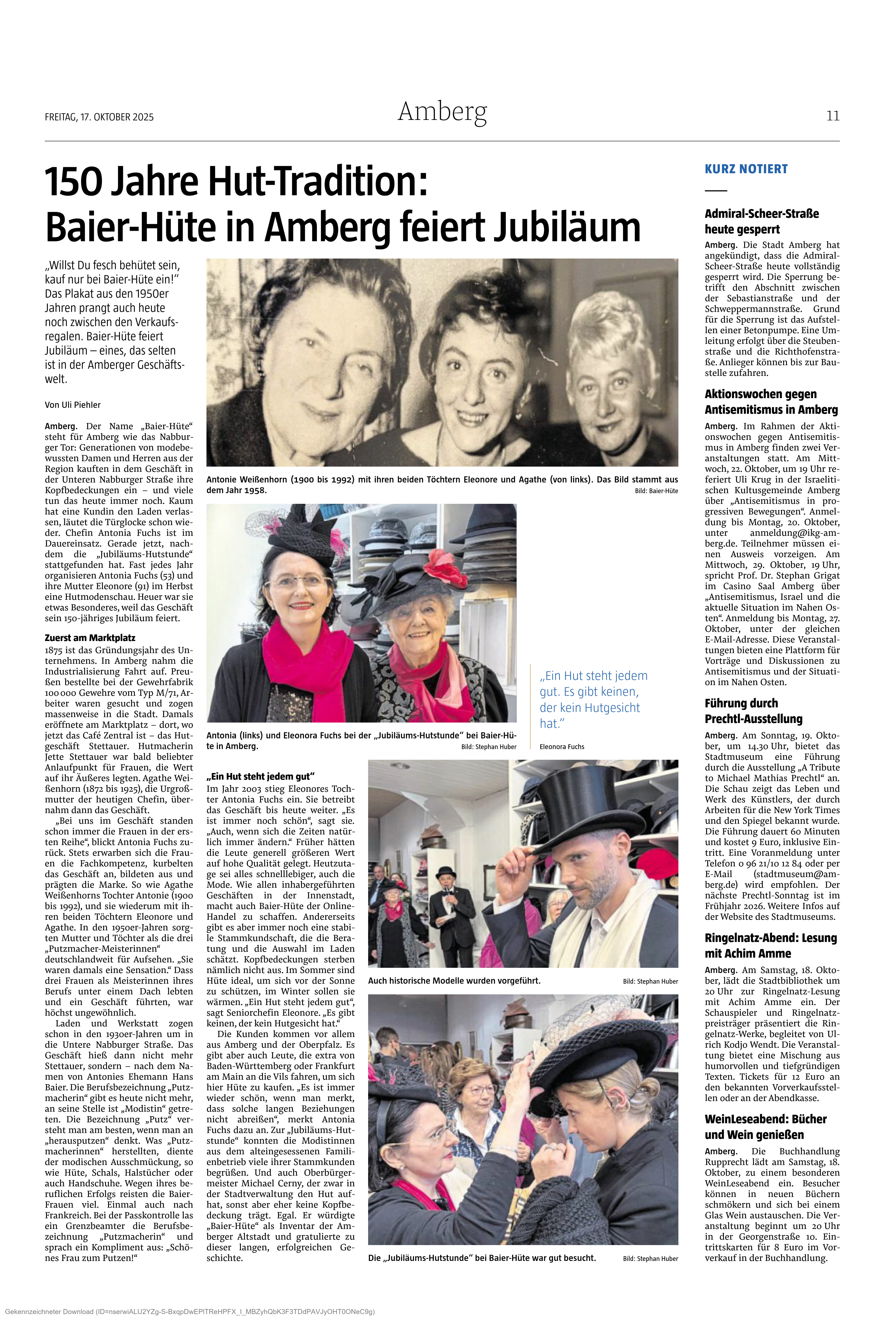 Artikel aus der Amberger Zeitung vom 17. Okt. 2025, mit freundlicher Genehmigung der Oberpfalz-Medien |